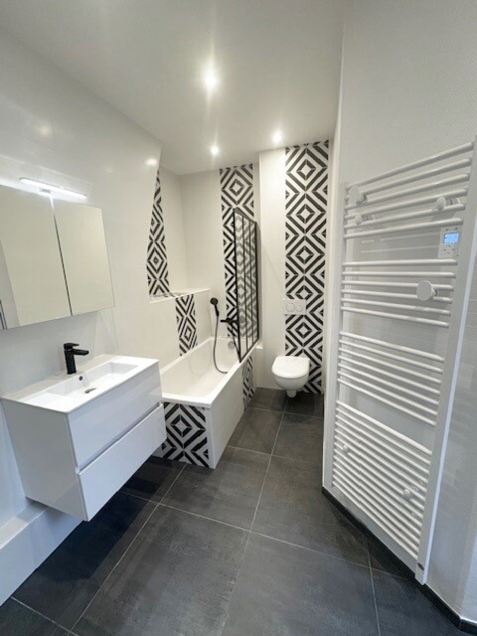Au 5ème étage d’un bel immeuble situé rue Mathurin Régnier (sans ascenseur), Magnifique appartement 4 pièces loué vide, entièrement refait à neuf, d’une surface d’environ 75 m².