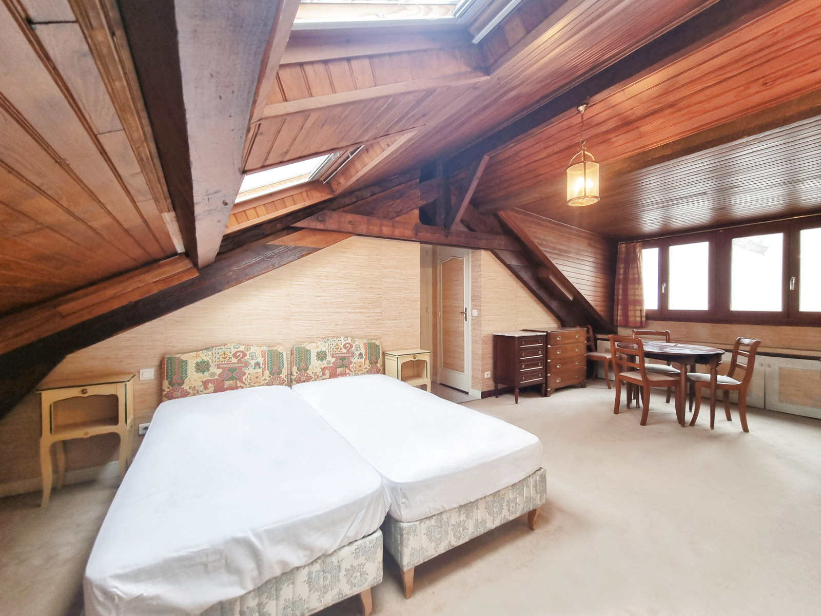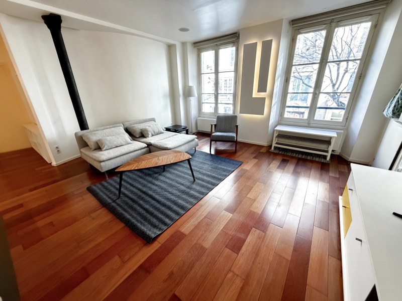 RUE DE PARIS — Situé aux 2ème et 3ème étages d’un immeuble sans ascenseur, ce duplex meublé de 4 pièces offre une surface de 108,20 m² en parfait état. Il se compose d’une entrée, d’un séjour, d’une cuisine indépendante aménagée et équipée, d’une terrasse de 27,50 m², de trois chambres, d’une salle de bains, d’une salle d’eau et de deux WC. Chauffage et eau chaude individuels.