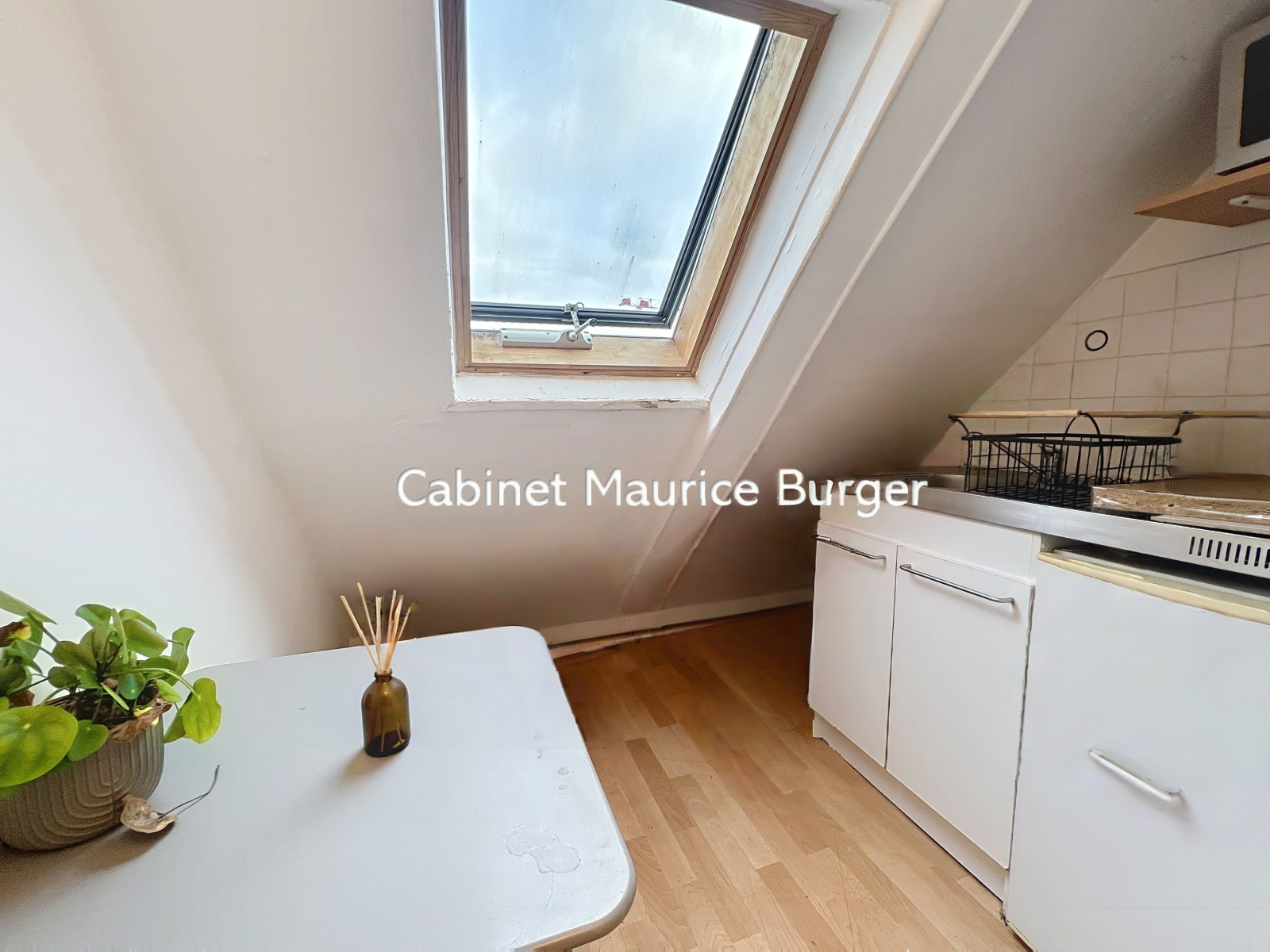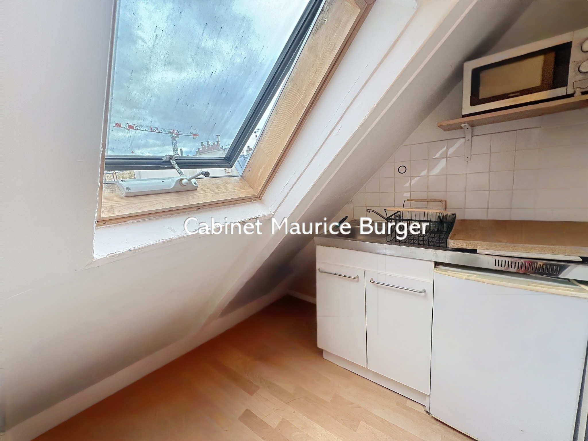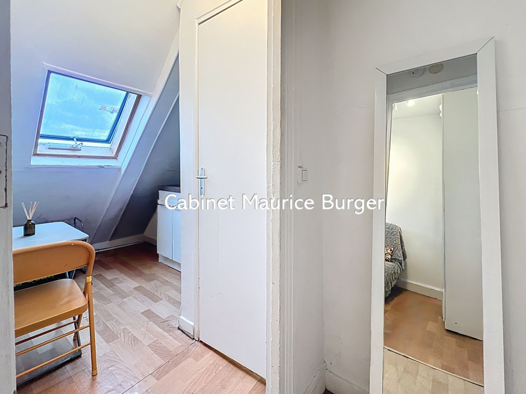 Deux velux apportent une belle luminosité et offrent une vue dégagée sur les toits de Paris.