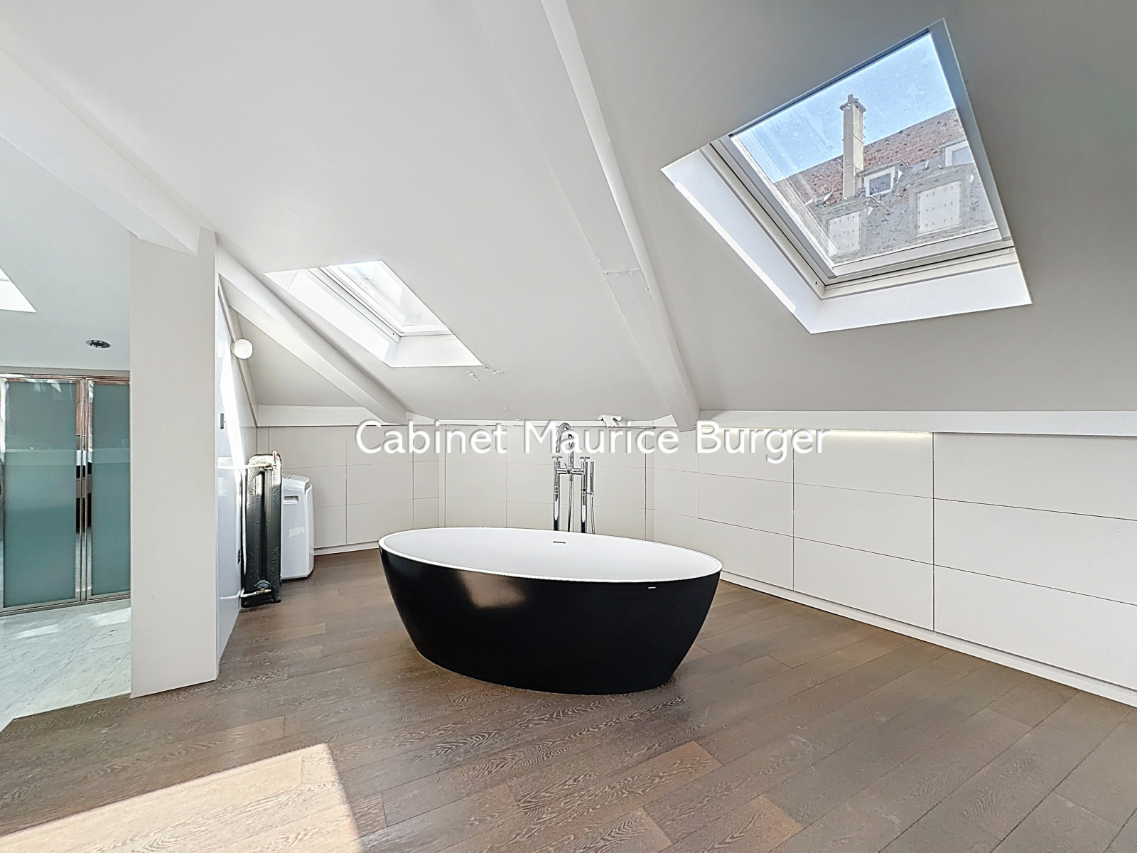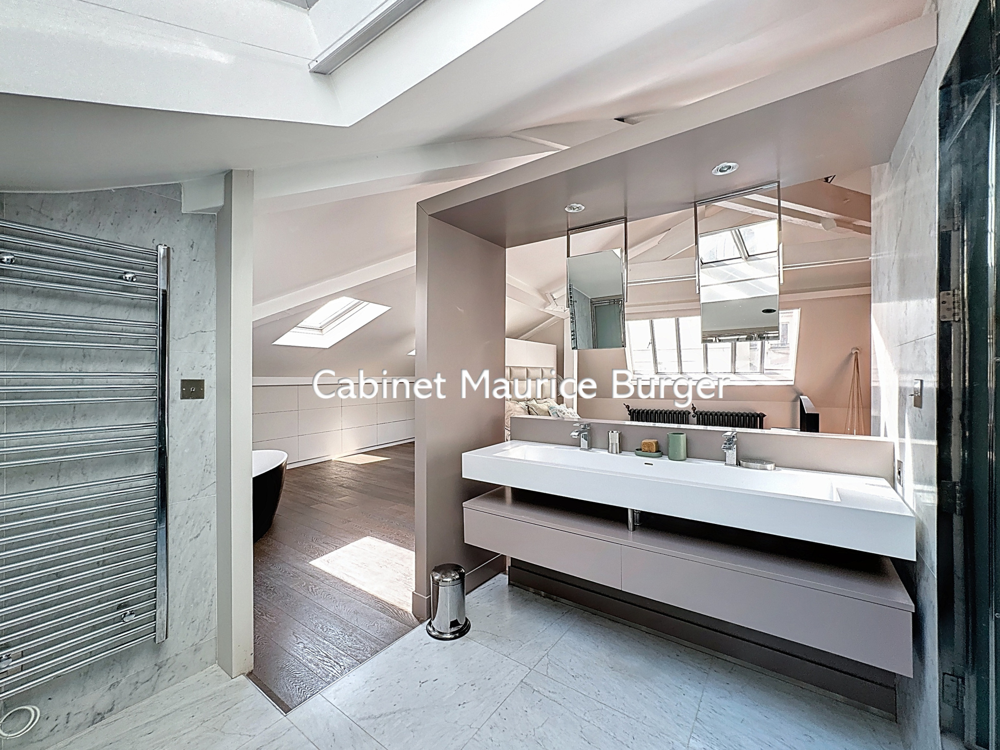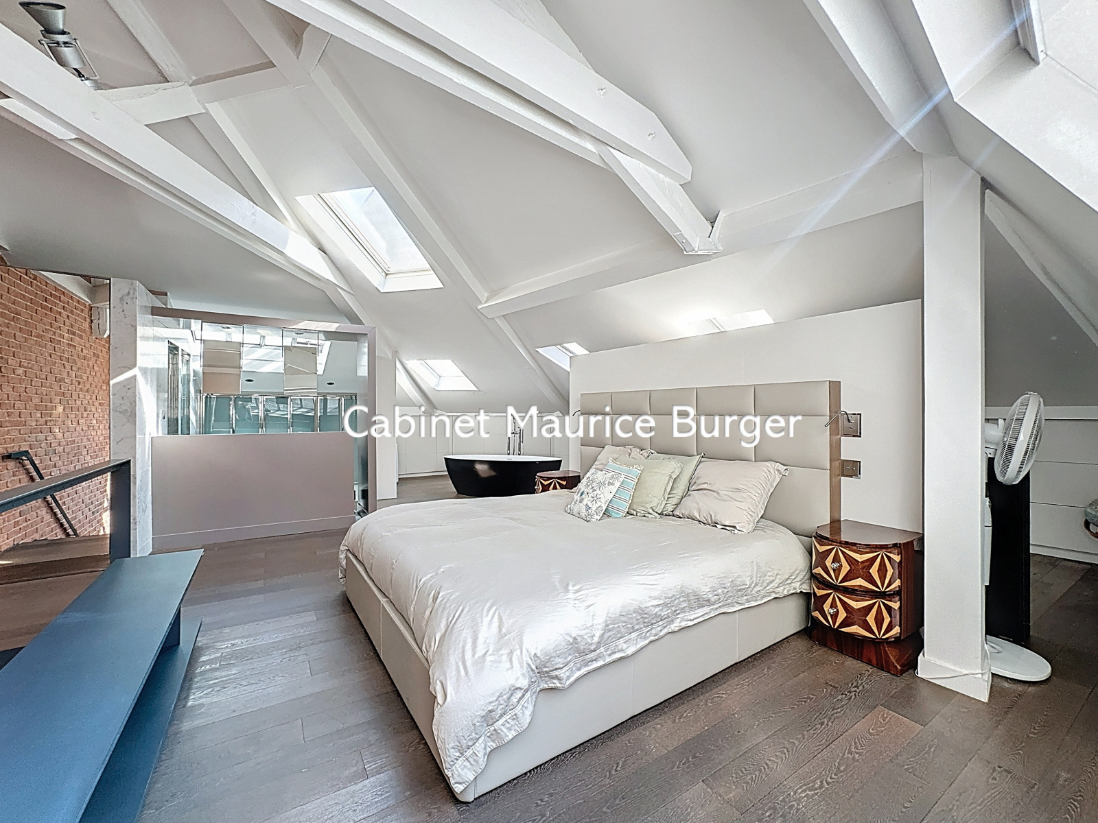 Une master bedroom de 34 m² Carrez (60 m² au sol) à l’étage avec salle de bains privative